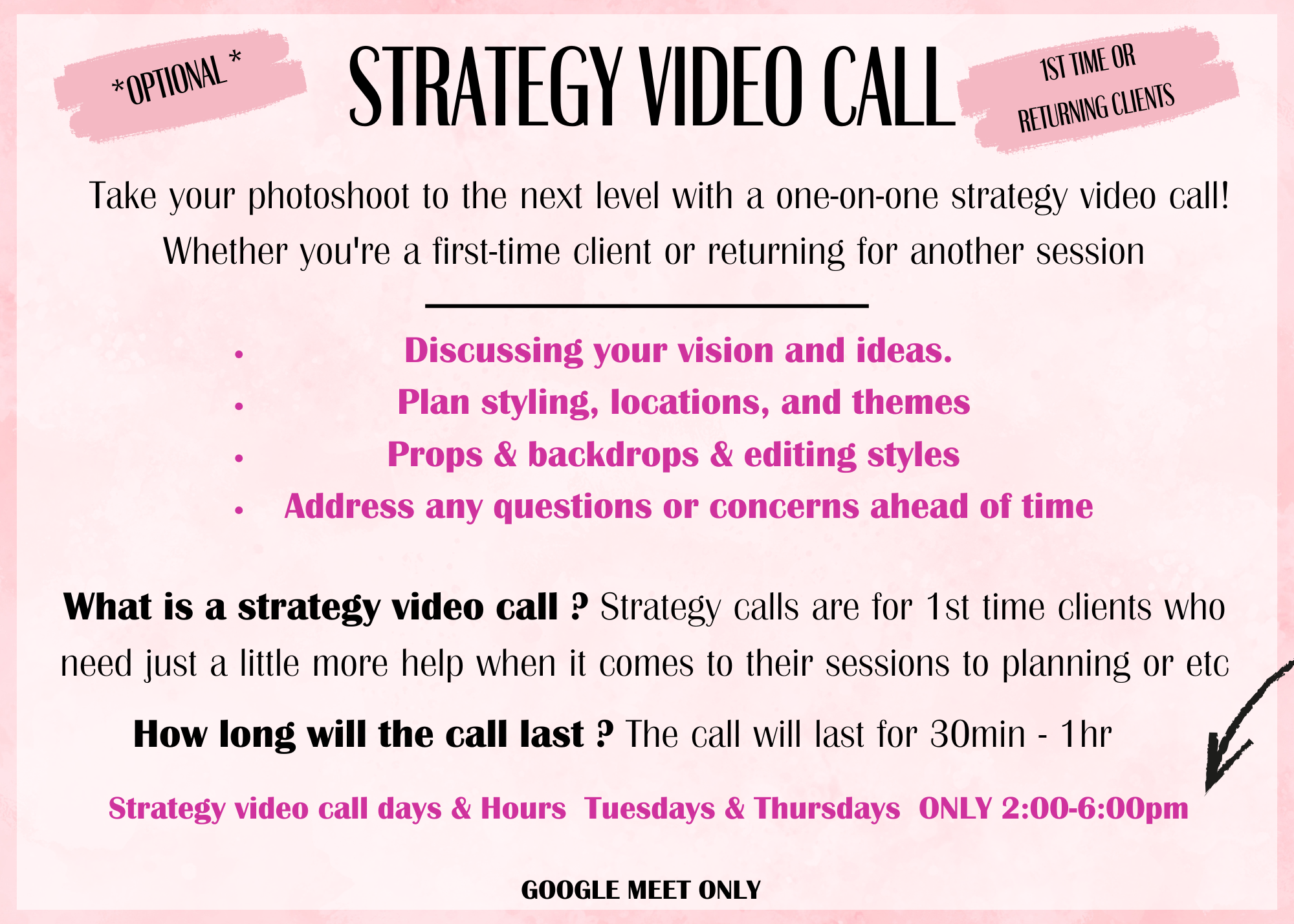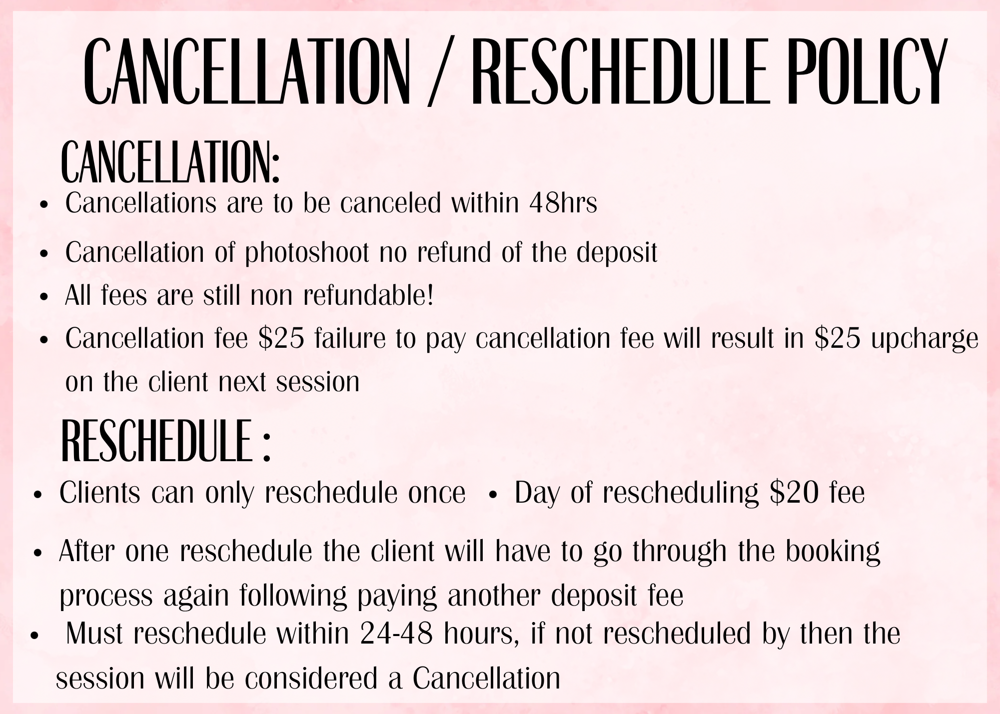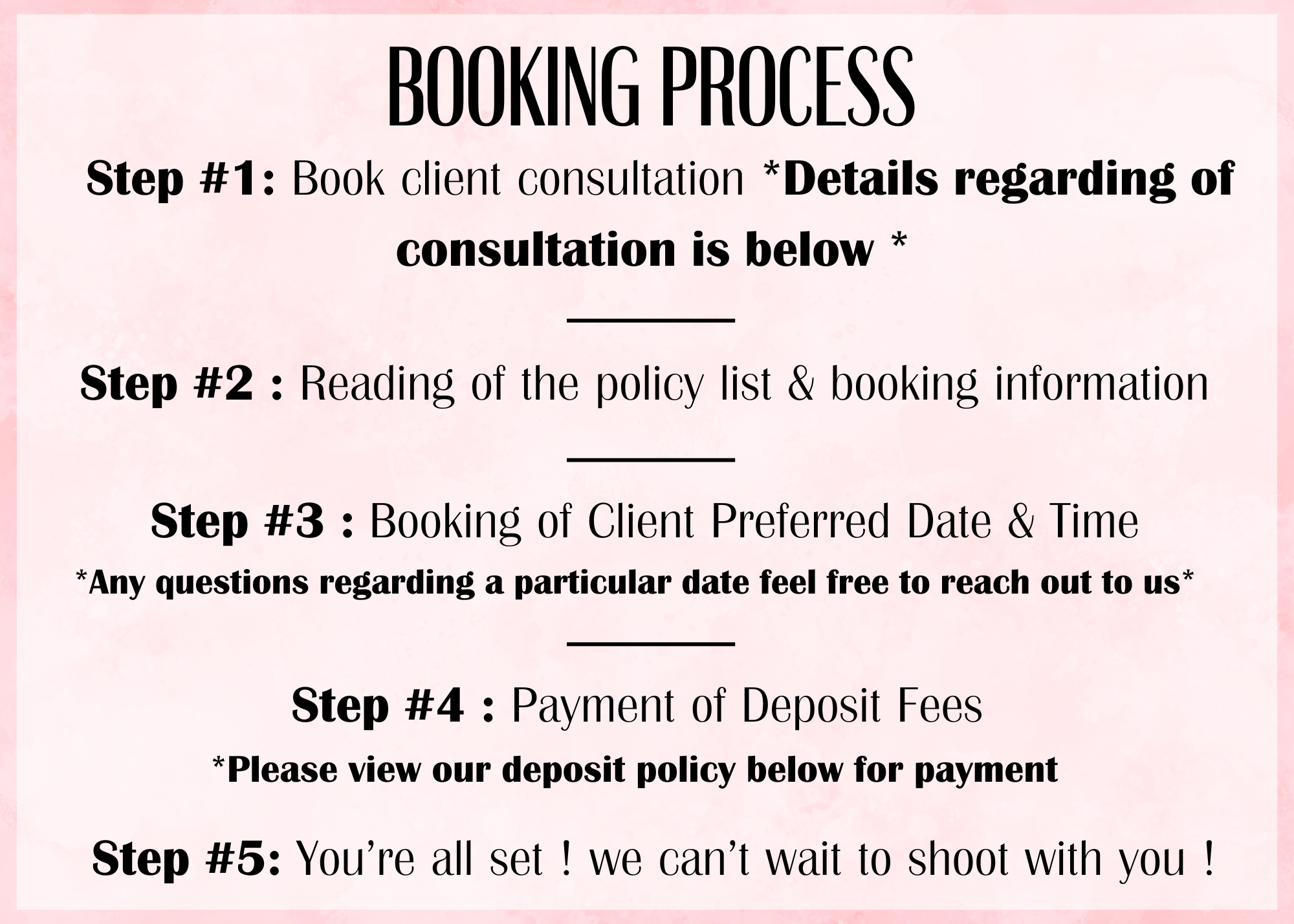 *Clients choosing in-studio & outdoor location; location must be in close proximity of our Studio