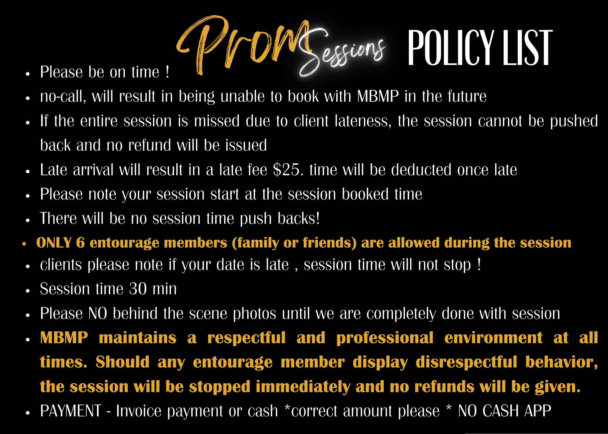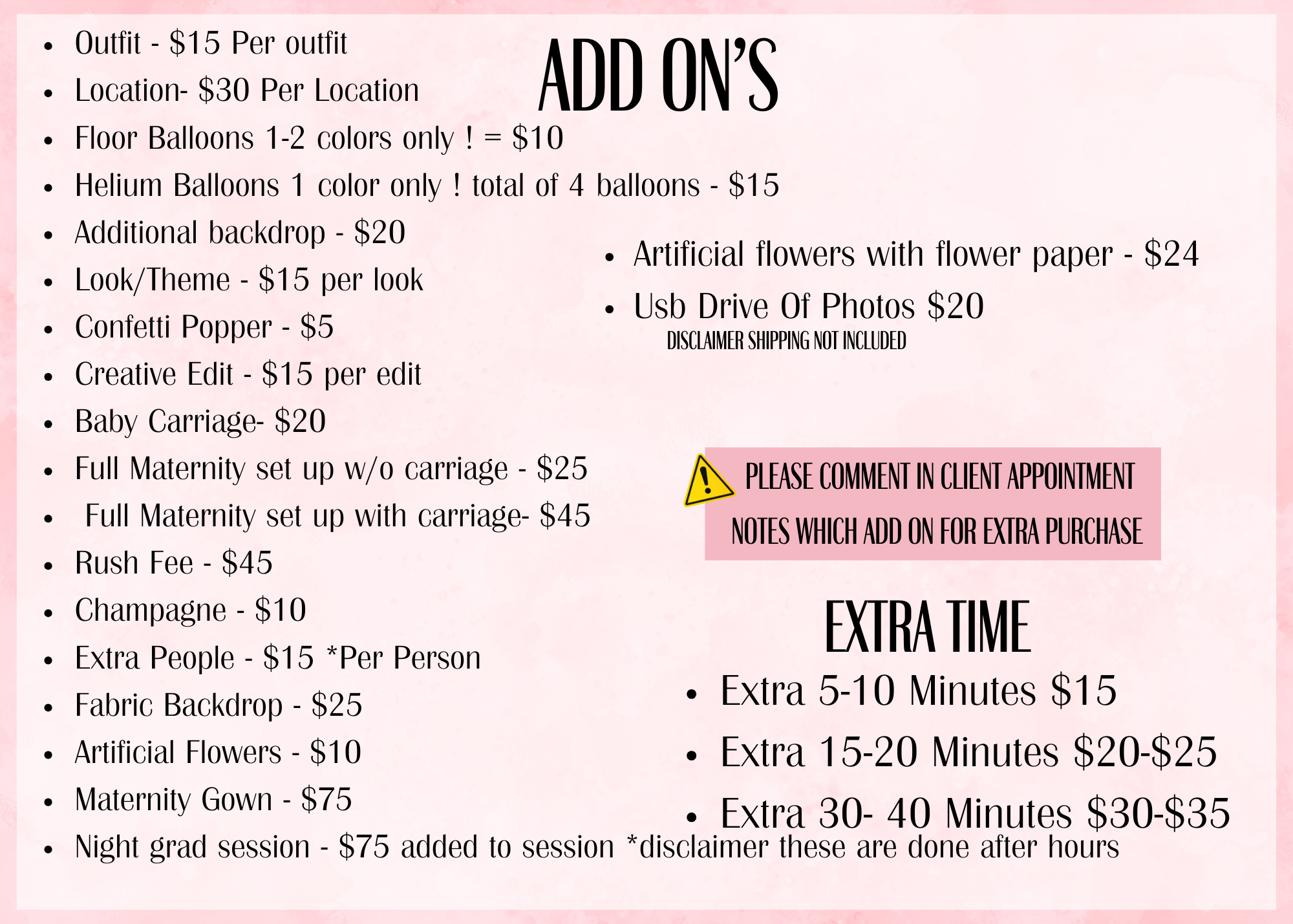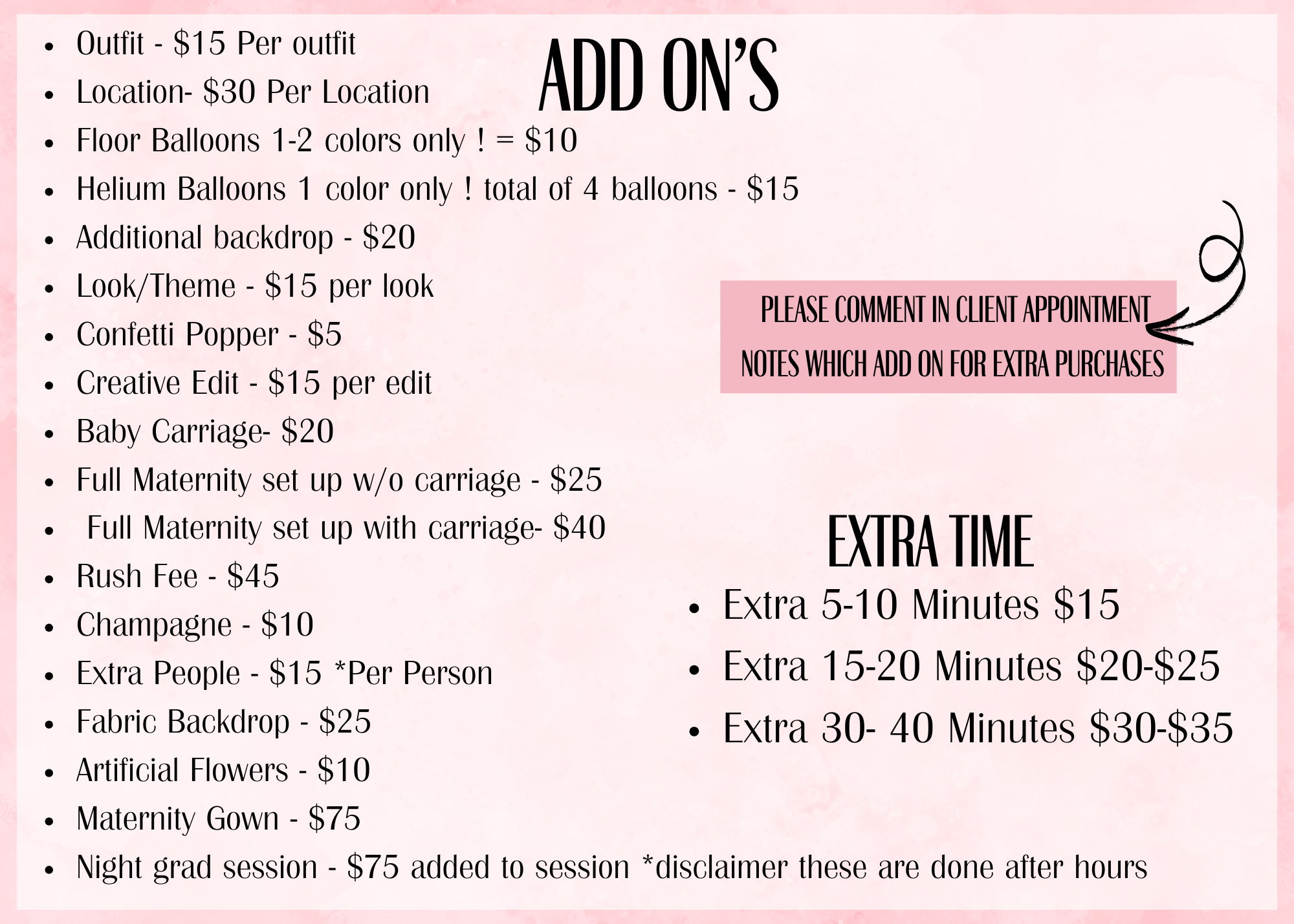 *Clients doing in-studio & outdoor location ; location must be close proximity from Making Memories Studios